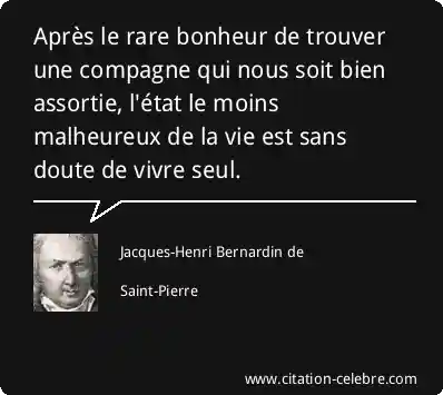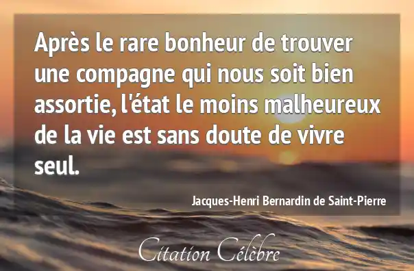 Après le rare bonheur de trouver une compagne qui nous soit bien assortie, l'état le moins malheureux de la vie est sans doute de vivre seul.