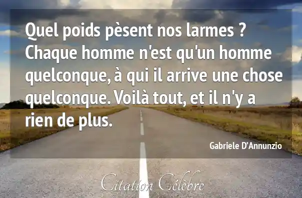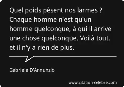 Quel poids pèsent nos larmes ? Chaque homme n'est qu'un homme quelconque, à qui il arrive une chose quelconque. Voilà tout, et il n'y a rien de plus.