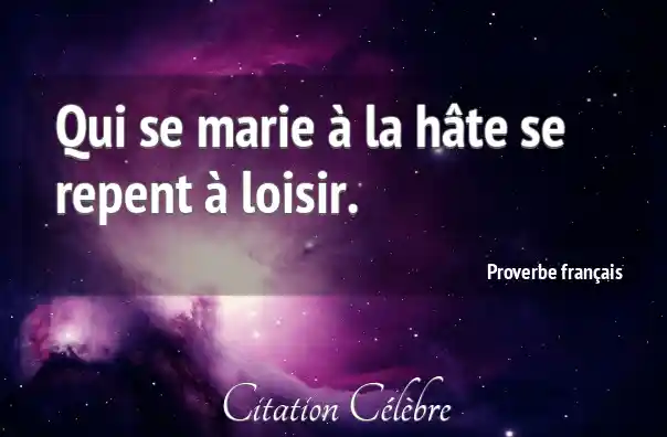 Qui se marie à la hâte se repent à loisir.