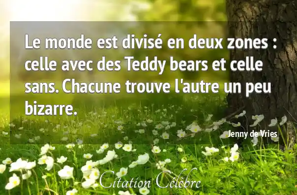 Le monde est divisé en deux zones : celle avec des Teddy bears et celle sans. Chacune trouve l'autre un peu bizarre.