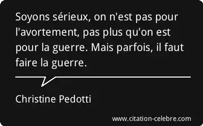 Soyons sérieux, on n'est pas pour l'avortement, pas plus qu'on est pour la guerre. Mais parfois, il faut faire la guerre.