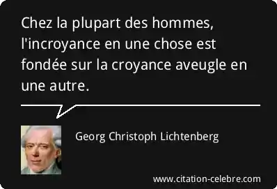 Chez la plupart des hommes, l'incroyance en une chose est fondée sur la croyance aveugle en une autre.