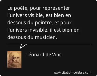 Le poète, pour représenter l'univers visible, est bien en dessous du peintre, et pour l'univers invisible, il est bien en dessous du musicien.