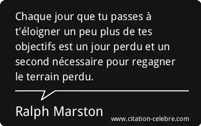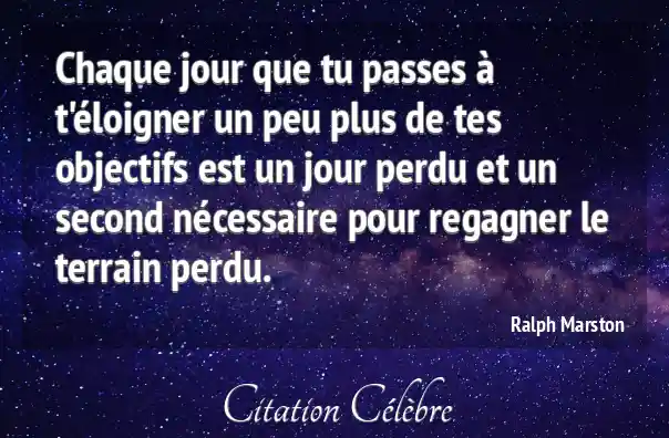 Chaque jour que tu passes à t'éloigner un peu plus de tes objectifs est un jour perdu et un second nécessaire pour regagner le terrain perdu.