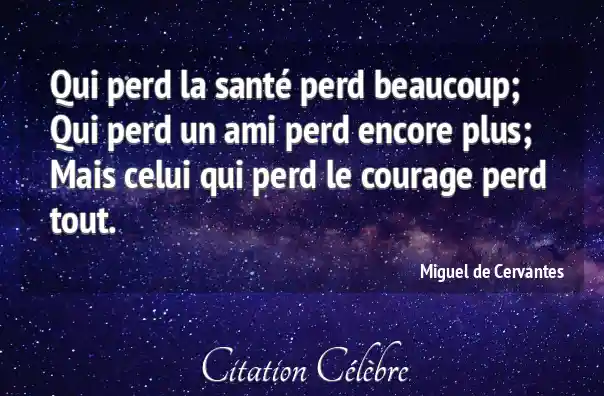 Qui perd la santé perd beaucoup; Qui perd un ami perd encore plus; Mais celui qui perd le courage perd tout.