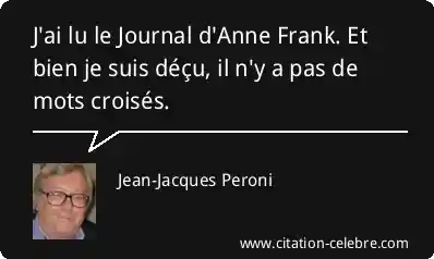 J'ai lu le Journal d'Anne Frank. Et bien je suis déçu, il n'y a pas de mots croisés.
