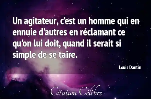 Un agitateur, c'est un homme qui en ennuie d'autres en réclamant ce qu'on lui doit, quand il serait si simple de se taire.