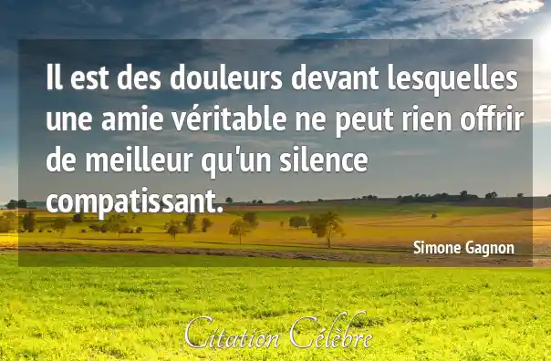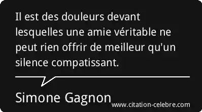 Il est des douleurs devant lesquelles une amie véritable ne peut rien offrir de meilleur qu'un silence compatissant.