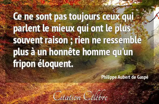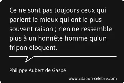 Ce ne sont pas toujours ceux qui parlent le mieux qui ont le plus souvent raison ; rien ne ressemble plus à un honnête homme qu'un fripon éloquent.