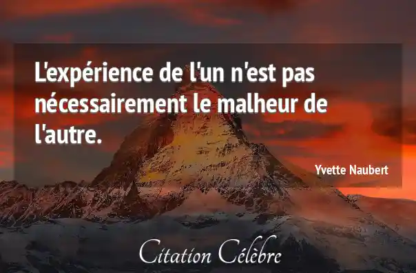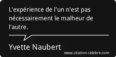 L'expérience de l'un n'est pas nécessairement le malheur de l'autre.