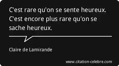 C'est rare qu'on se sente heureux. C'est encore plus rare qu'on se sache heureux.