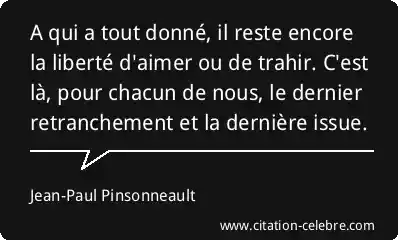 A qui a tout donné, il reste encore la liberté d'aimer ou de trahir. C'est là, pour chacun de nous, le dernier retranchement et la dernière issue.