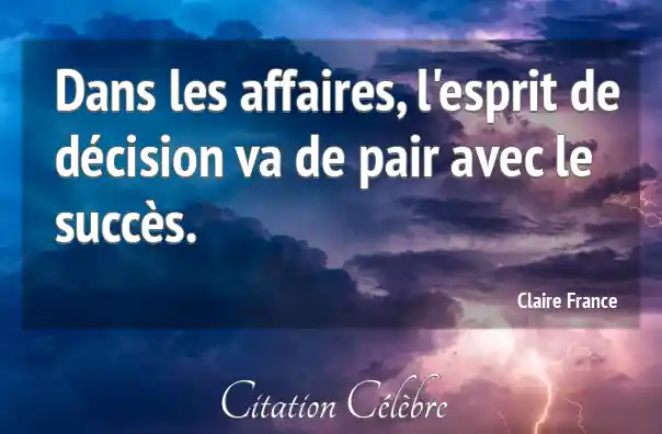 Citation Claire France esprit : Dans les affaires, l'esprit de décision va de pair avec...