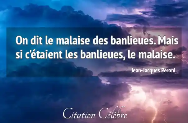 On dit le malaise des banlieues. Mais si c'étaient les banlieues, le malaise.