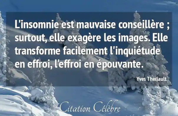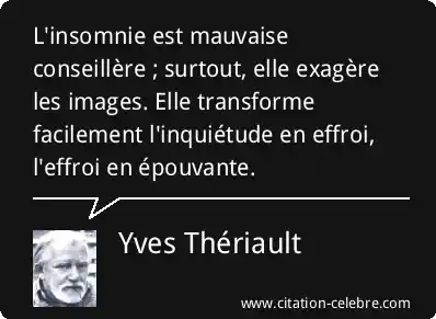 L'insomnie est mauvaise conseillère ; surtout, elle exagère les images. Elle transforme facilement l'inquiétude en effroi, l'effroi en épouvante.