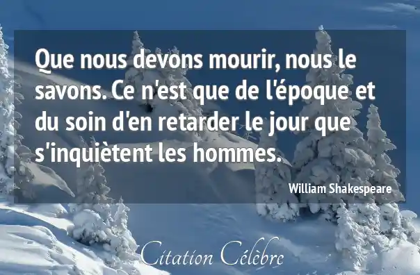 Que nous devons mourir, nous le savons. Ce n'est que de l'époque et du soin d'en retarder le jour que s'inquiètent les hommes.