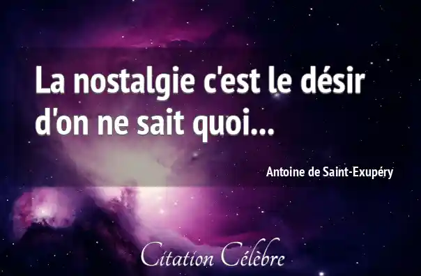 Citation Antoine de Saint-Exupéry desir : La nostalgie c'est le désir d'on ne sait quoi......