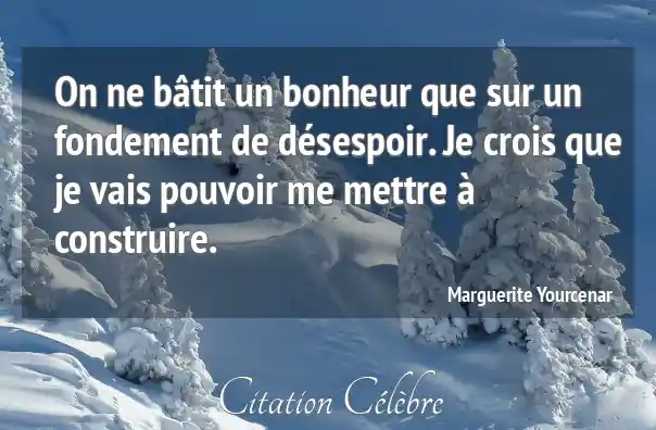 On ne bâtit un bonheur que sur un fondement de désespoir. Je crois que je vais pouvoir me mettre à construire.