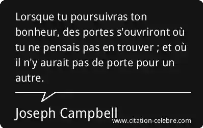 Lorsque tu poursuivras ton bonheur, des portes s'ouvriront où tu ne pensais pas en trouver ; et où il n'y aurait pas de porte pour un autre.