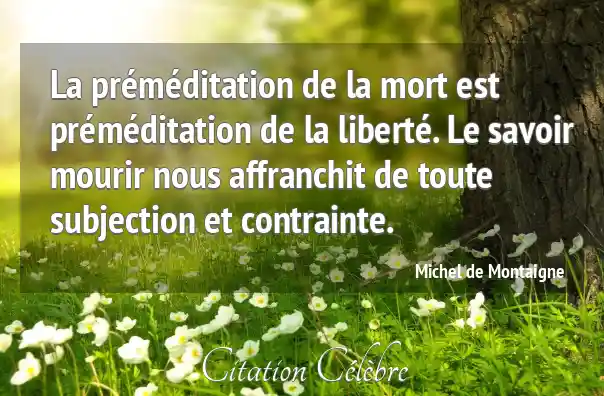 La préméditation de la mort est préméditation de la liberté. Le savoir mourir nous affranchit de toute subjection et contrainte.