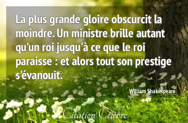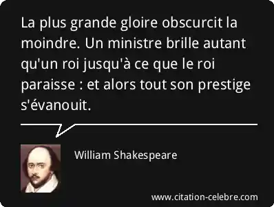 La plus grande gloire obscurcit la moindre. Un ministre brille autant qu'un roi jusqu'à ce que le roi paraisse : et alors tout son prestige s'évanouit.