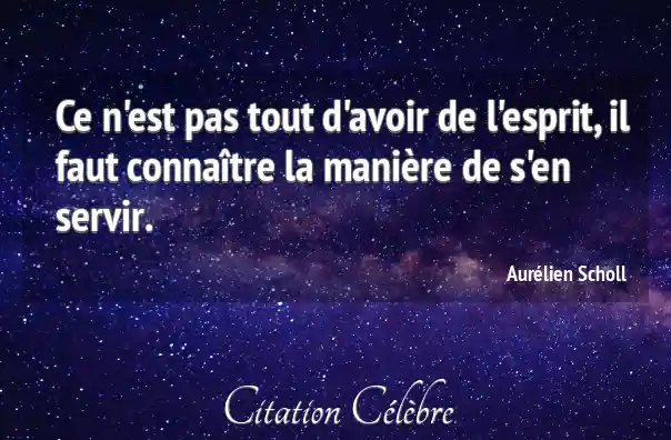 Ce n'est pas tout d'avoir de l'esprit, il faut connaître la manière de s'en servir.