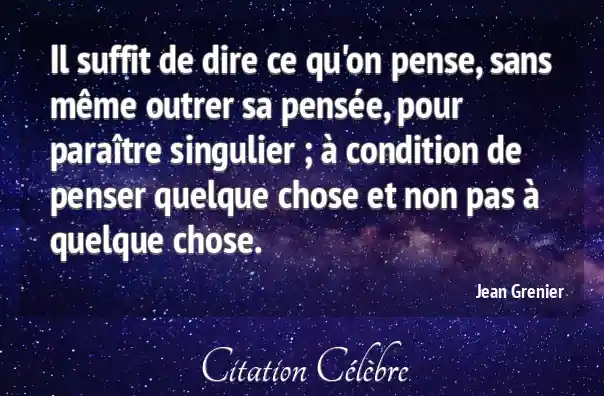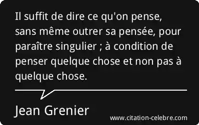 Il suffit de dire ce qu'on pense, sans même outrer sa pensée, pour paraître singulier ; à condition de penser quelque chose et non pas à quelque chose.