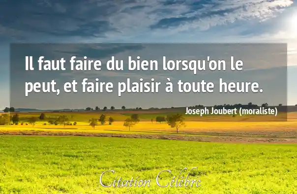 Il faut faire du bien lorsqu'on le peut, et faire plaisir à toute heure.