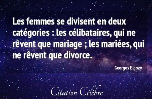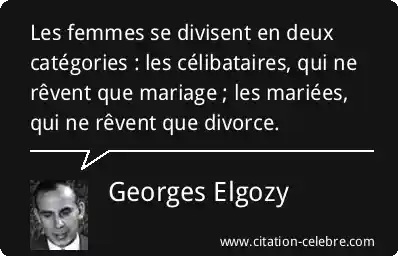 Les femmes se divisent en deux catégories : les célibataires, qui ne rêvent que mariage ; les mariées, qui ne rêvent que divorce.