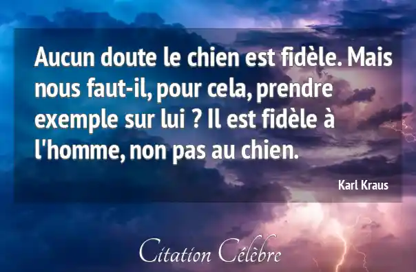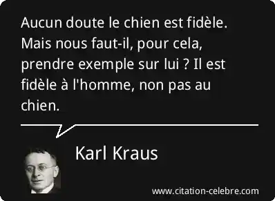 Aucun doute le chien est fidèle. Mais nous faut-il, pour cela, prendre exemple sur lui ? Il est fidèle à l'homme, non pas au chien.