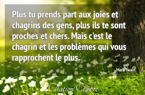 Plus tu prends part aux joies et chagrins des gens, plus ils te sont proches et chers. Mais c'est le chagrin et les problèmes qui vous rapprochent le plus.