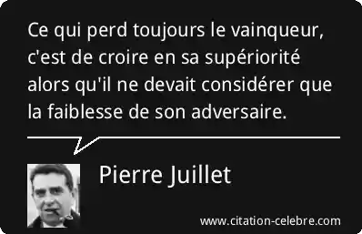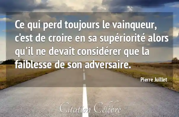 Ce qui perd toujours le vainqueur, c'est de croire en sa supériorité alors qu'il ne devait considérer que la faiblesse de son adversaire.