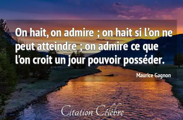 On hait, on admire ; on hait si l'on ne peut atteindre ; on admire ce que l'on croit un jour pouvoir posséder.
