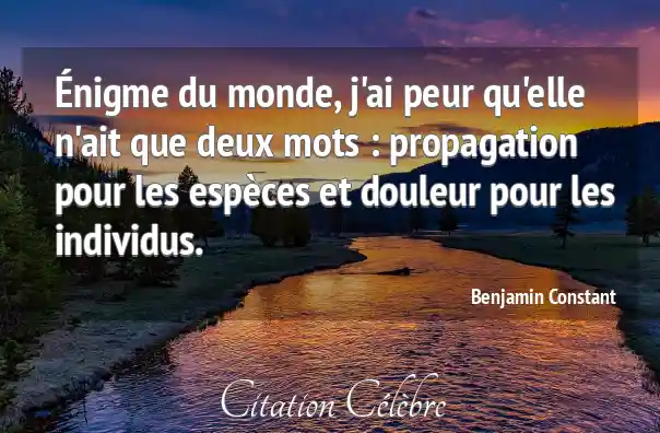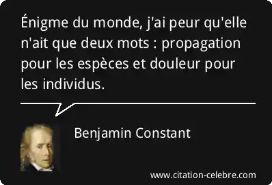 Énigme du monde, j'ai peur qu'elle n'ait que deux mots : propagation pour les espèces et douleur pour les individus.