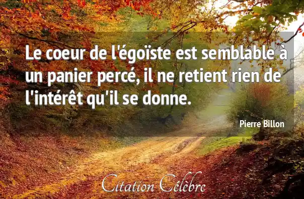 Le coeur de l'égoïste est semblable à un panier percé, il ne retient rien de l'intérêt qu'il se donne.