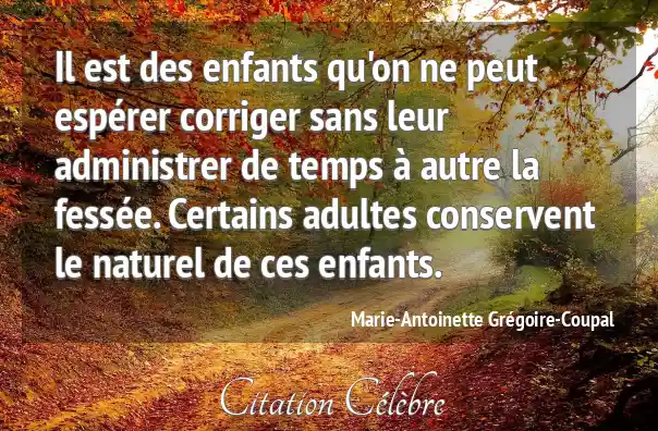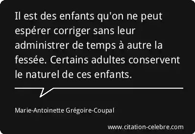 Il est des enfants qu'on ne peut espérer corriger sans leur administrer de temps à autre la fessée. Certains adultes conservent le naturel de ces enfants.
