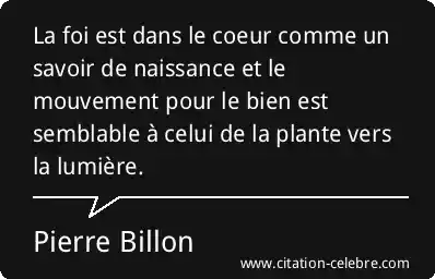 La foi est dans le coeur comme un savoir de naissance et le mouvement pour le bien est semblable à celui de la plante vers la lumière.