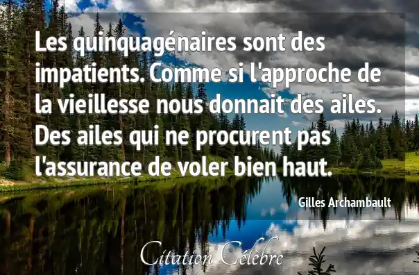 Les quinquagénaires sont des impatients. Comme si l'approche de la vieillesse nous donnait des ailes. Des ailes qui ne procurent pas l'assurance de voler bien haut.