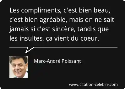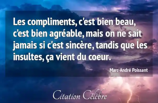Les compliments, c'est bien beau, c'est bien agréable, mais on ne sait jamais si c'est sincère, tandis que les insultes, ça vient du coeur.