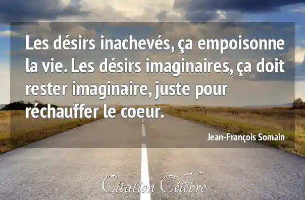 Les désirs inachevés, ça empoisonne la vie. Les désirs imaginaires, ça doit rester imaginaire, juste pour réchauffer le coeur.