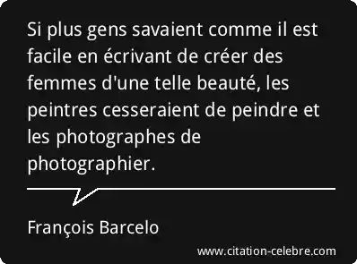 Si plus gens savaient comme il est facile en écrivant de créer des femmes d'une telle beauté, les peintres cesseraient de peindre et les photographes de photographier.