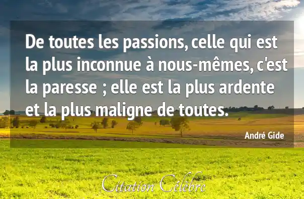 De toutes les passions, celle qui est la plus inconnue à nous-mêmes, c'est la paresse ; elle est la plus ardente et la plus maligne de toutes.