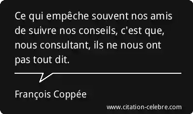 Ce qui empêche souvent nos amis de suivre nos conseils, c'est que, nous consultant, ils ne nous ont pas tout dit.