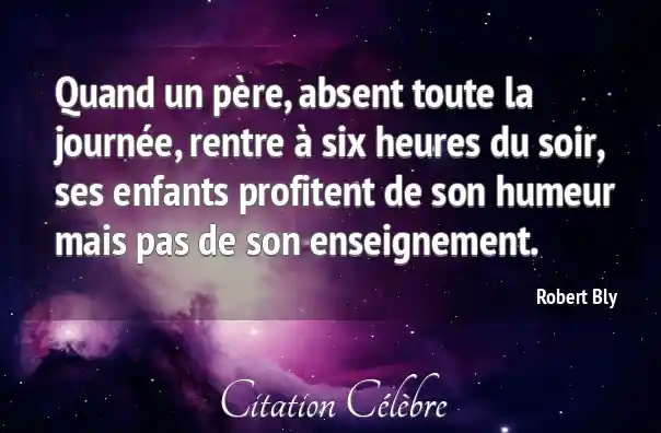 Citation Robert Bly pere : Quand un père, absent toute la journée, rentre à six...