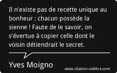 Il n'existe pas de recette unique au bonheur : chacun possède la sienne ! Faute de le savoir, on s'évertue à copier celle dont le voisin détiendrait le secret.