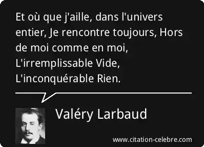Et où que j'aille, dans l'univers entier, Je rencontre toujours, Hors de moi comme en moi, L'irremplissable Vide, L'inconquérable Rien.