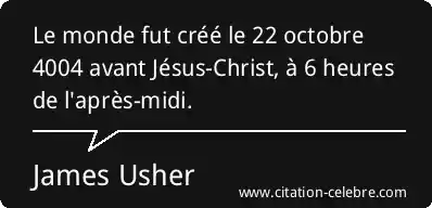 Le monde fut créé le 22 octobre 4004 avant Jésus-Christ, à 6 heures de l'après-midi.