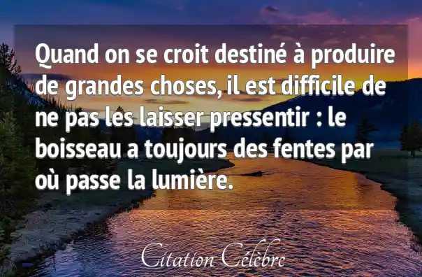 Quand on se croit destiné à produire de grandes choses, il est difficile de ne pas les laisser pressentir : le boisseau a toujours des fentes par où passe la lumière.