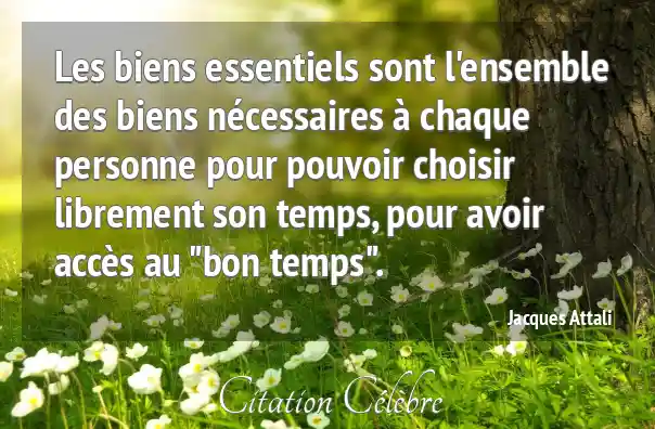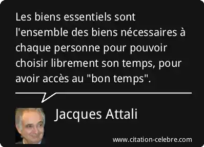 Les biens essentiels sont l'ensemble des biens nécessaires à chaque personne pour pouvoir choisir librement son temps, pour avoir accès au "bon temps".