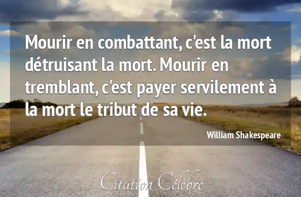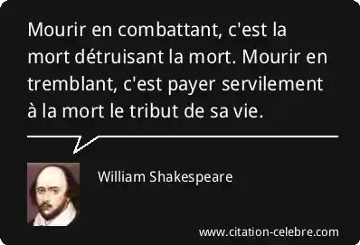 Mourir en combattant, c'est la mort détruisant la mort. Mourir en tremblant, c'est payer servilement à la mort le tribut de sa vie.